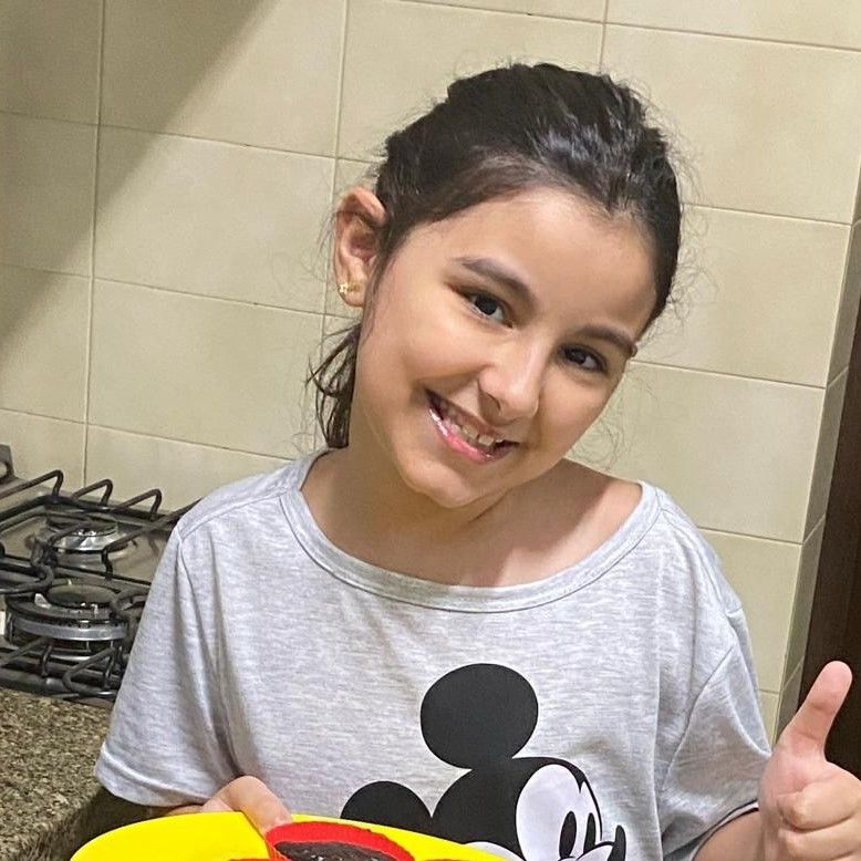 Essa é a Sófia, adora preparar nossas receitas. Sempre manda os vídeos para mostrar como ficaram deliciosas.